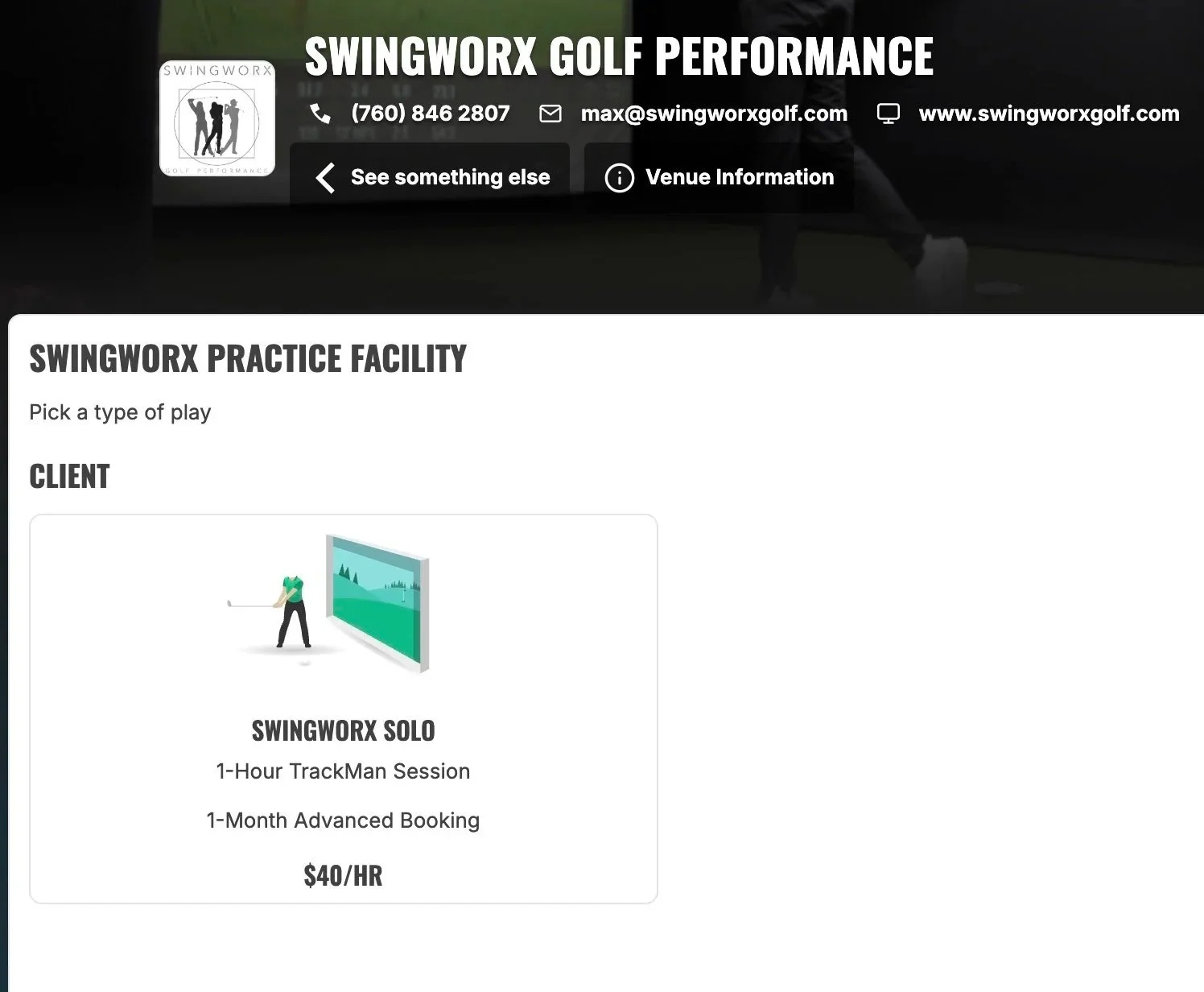 2. When confirmed, you may begin scheduling sessions on the Your Golf Booking site. Go to Venues and pull up Swingworx Golf Performance. Having been registered, you will select your enrollment option and schedule an appointment. Once scheduled, you will receive a confirmation email. KEEP THIS EMAIL, you will need it. Head to the facility when it’s time for your session.