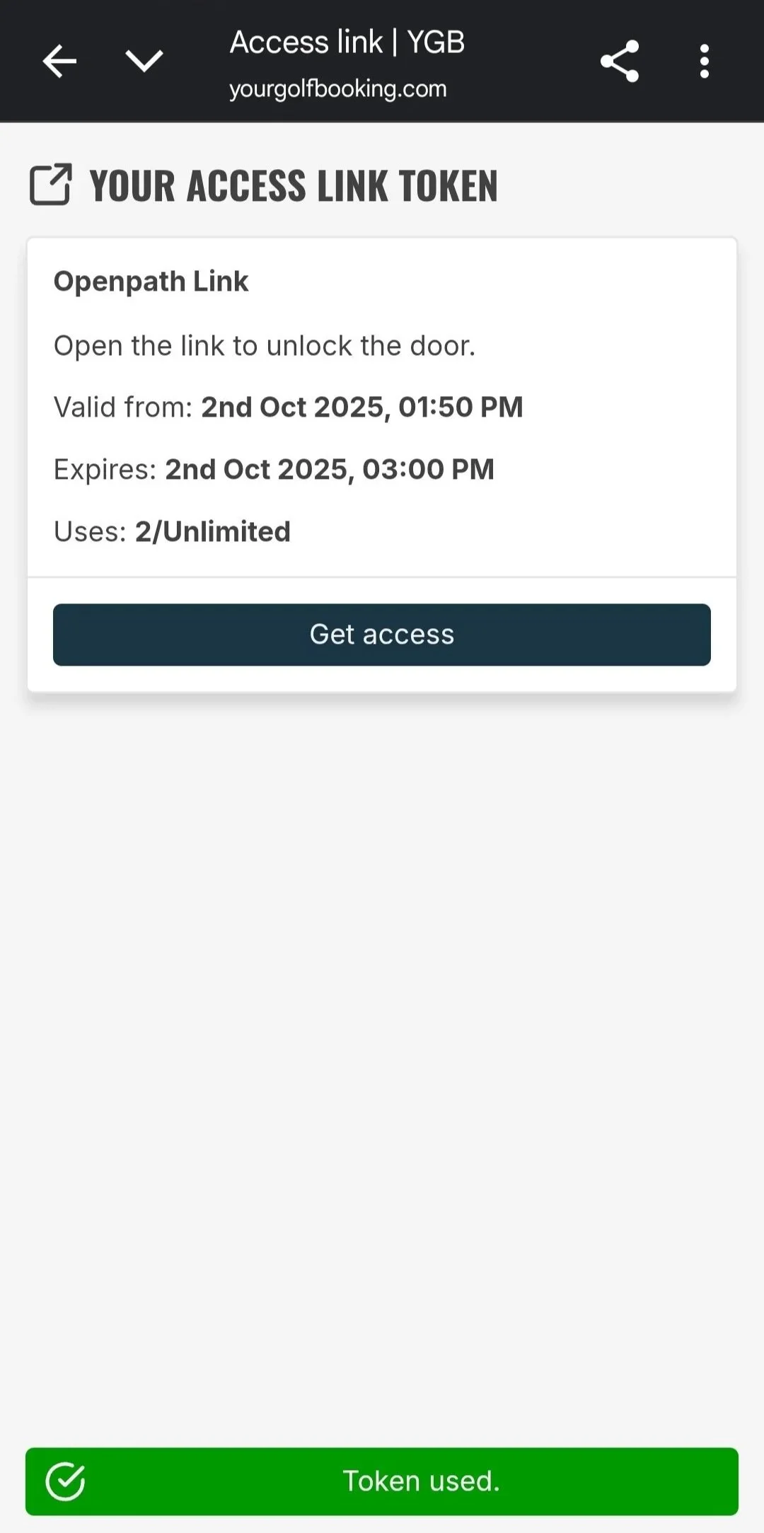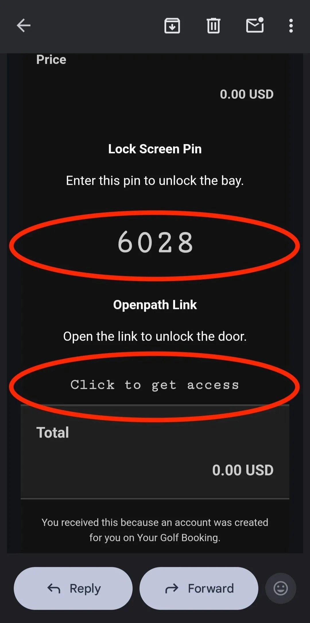 3. The entrance to the practice facility has automated security and locking system with access only granted to those with an appointment. Additionally, the TrackMan software will require a pin. Both of theses are provided in the email confirmation. For the door access, tap the link in the email then the button that says “Get access” to unlock. Enter the facility and head to your chosen bay.